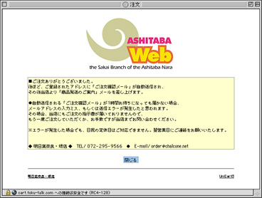 (4)最終の確認画面です。 ■ご注文内容をよくご確認ください。誤りがある場合は【戻る】ボタンで入力画面に戻り修正してください。内容に間違いがなければ【注文する】ボタンを押してください。これでご注文は完了です。 |